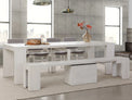 The Transformer Dining Set – The Family offers the ultimate solution for growing families and avid entertainers alike. This extendable dining table set easily adapts to seat anywhere from 2 to 12 guests, making it perfect for cozy dinners or lively gatherings. The set includes four stylish, stackable dining chairs, combining smart design with everyday practicality. Thanks to its space-saving features, you can maximize your dining area without compromising on comfort or style.